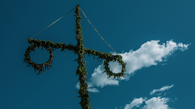 An Mittsommer darf natürlich die Mittsommerstange, auch Maibaum oder Majstången genannt, nicht fehlen. Das Wort Maj kommt jedoch nicht vom Monat Mai, sondern von „att maja“, was auf Deutsch „mit Blumen und Blättern schmücken“ bedeutet.